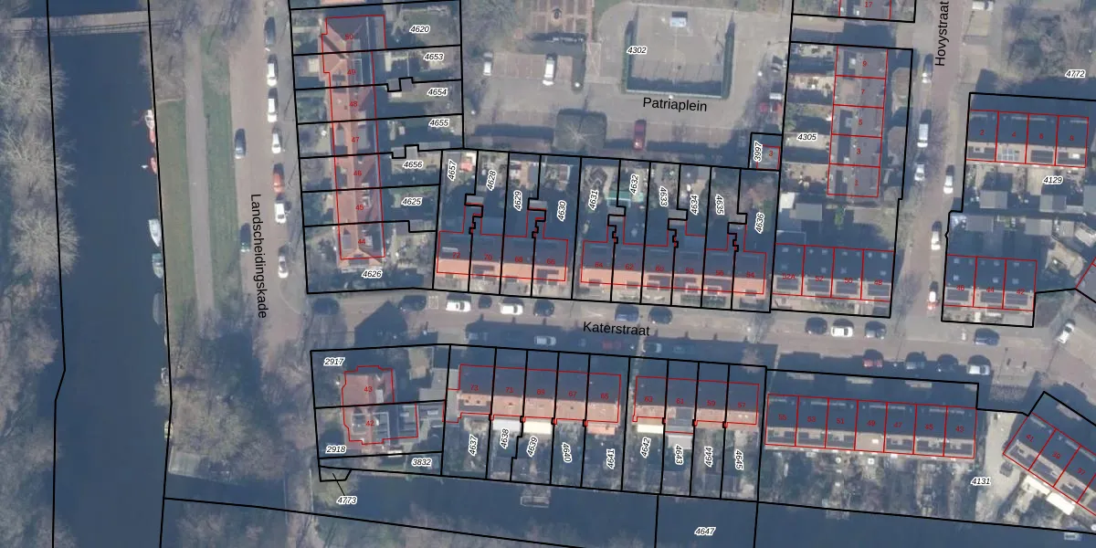 Katerstraat 66 is gelegen op kadastraal perceel ASV00G4630. Deze kadastrale aanduiding is uniek en wordt gebruikt door het Kadaster om eigendomsrechten en andere zakelijke rechten vast te leggen. Het perceel maakt onderdeel uit van de kadastrale gemeente Amstelveen.