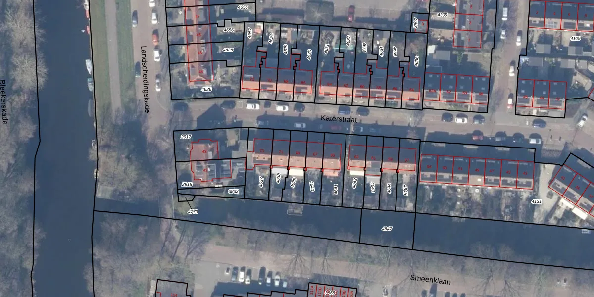 Katerstraat 69 is gelegen op kadastraal perceel ASV00G4639. Deze kadastrale aanduiding is uniek en wordt gebruikt door het Kadaster om eigendomsrechten en andere zakelijke rechten vast te leggen. Het perceel maakt onderdeel uit van de kadastrale gemeente Amstelveen.