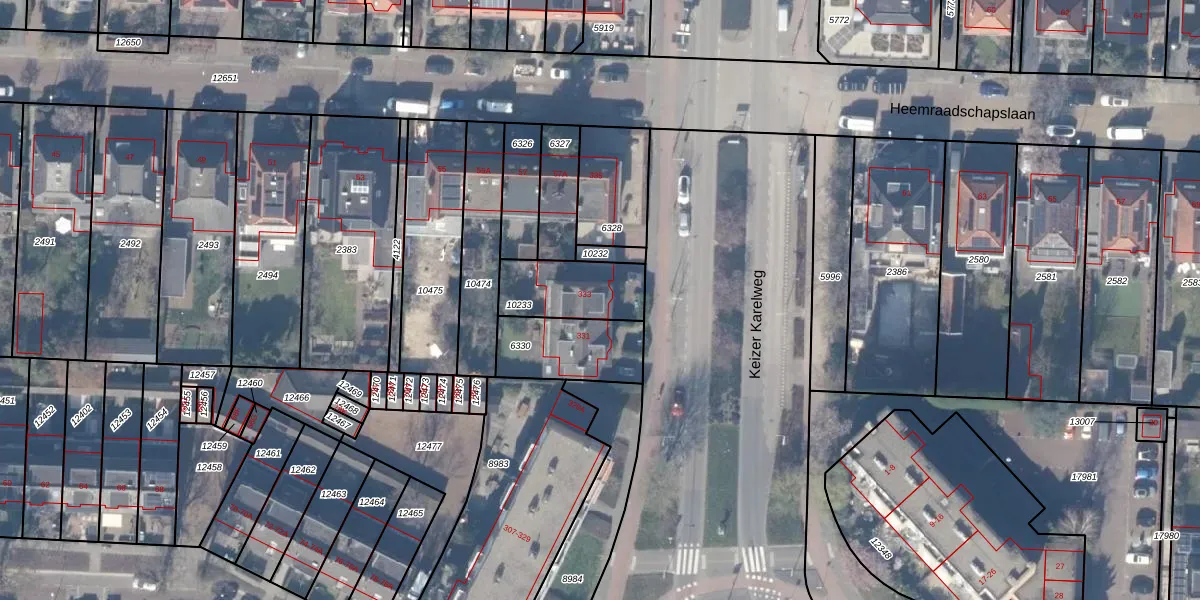 Keizer Karelweg 333 is gelegen op kadastraal perceel ASV00H10233. Deze kadastrale aanduiding is uniek en wordt gebruikt door het Kadaster om eigendomsrechten en andere zakelijke rechten vast te leggen. Het perceel maakt onderdeel uit van de kadastrale gemeente Amstelveen.