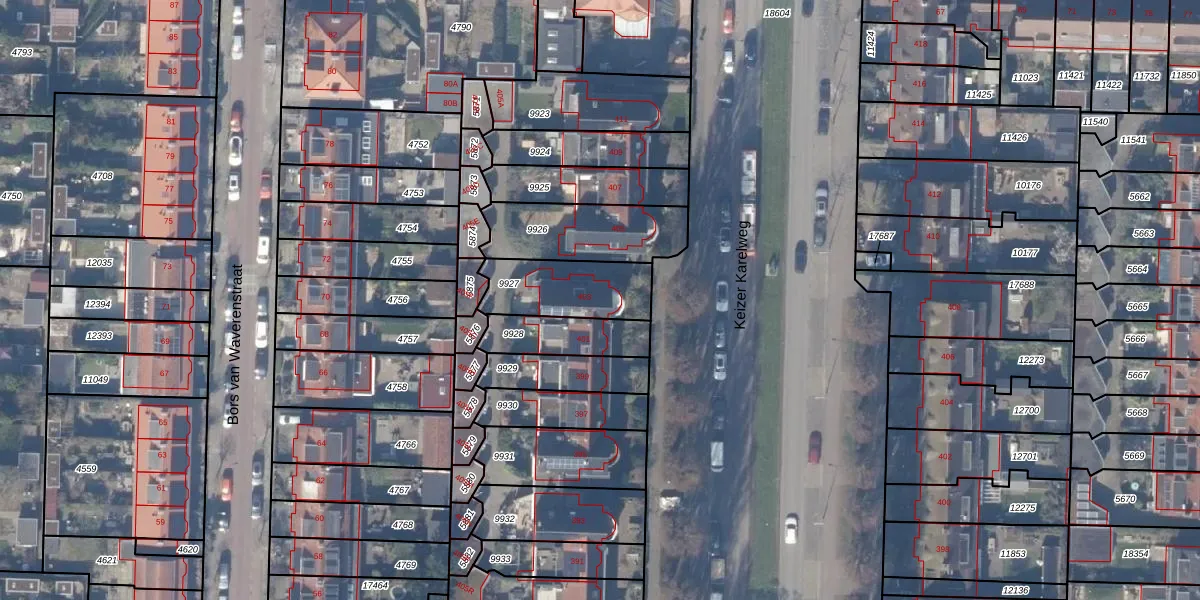 Gebruik de zoekbalk of klik op een perceel voor informatie over de adressen binnen dit perceel.