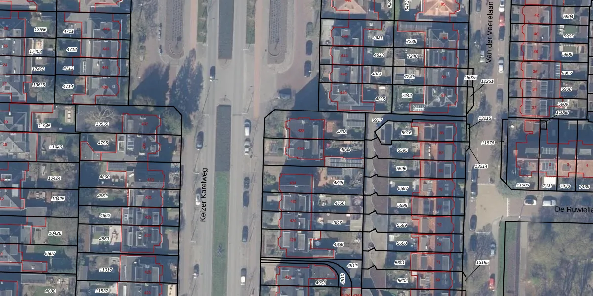 Het perceel waarop Keizer Karelweg 436 staat heeft een oppervlakte van 318 m². Dit is een groot perceel. De perceeloppervlakte wordt geregistreerd door het Kadaster. Gedetailleerde informatie over de maten van dit perceel kunt u vinden in het rapport Kadastrale kaart met maatvoering van Keizer Karelweg 436.