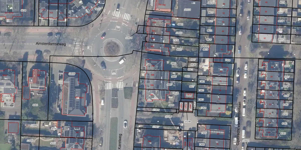 Het perceel waarop het adres ligt is ASV00-H-9885. De afkorting 'ASV00' staat voor kadastrale gemeente Amstelveen. Het perceel is 184 m² groot. Dat is kleiner dan de gemiddelde perceeloppervlakte in Amstelveen, dat op 1598,78 m² ligt. Het grootste perceel in de kadastrale gemeente is 1,78 km². Het kleinste perceel heeft een oppervlakte van 0 m². Op het perceel bevinden zich geen andere adressen. De huidige grenzen van het perceel zijn digitaal in de Basisregistratie Kadaster (BRK) geregistreerd op 27-10-2009.