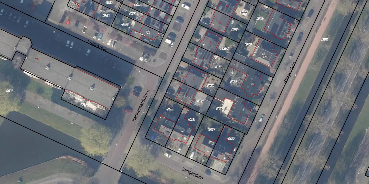 Gebruik de zoekbalk of klik op een perceel voor informatie over de adressen binnen dit perceel.