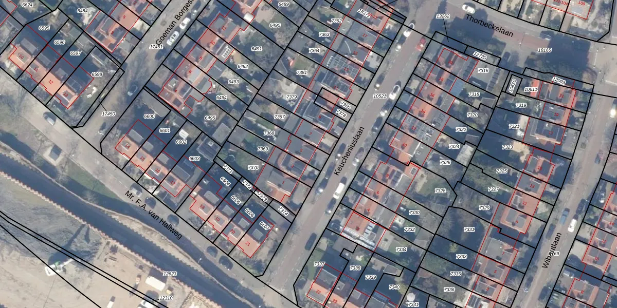 Gebruik de zoekbalk of klik op een perceel voor informatie over de adressen binnen dit perceel.