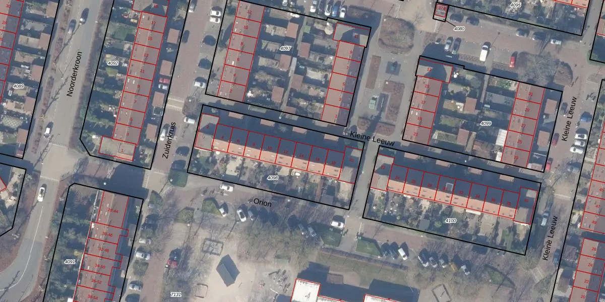 Kleine Leeuw 14 is gelegen op kadastraal perceel ASV00M4098. Deze kadastrale aanduiding is uniek en wordt gebruikt door het Kadaster om eigendomsrechten en andere zakelijke rechten vast te leggen. Het perceel maakt onderdeel uit van de kadastrale gemeente Amstelveen.