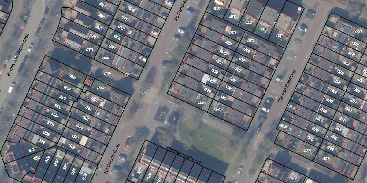 Het perceel waarop Ko Donckerlaan 15 staat heeft een oppervlakte van 188 m². Dit is een middelgroot perceel. De perceeloppervlakte wordt geregistreerd door het Kadaster. Gedetailleerde informatie over de maten van dit perceel kunt u vinden in het rapport Kadastrale kaart met maatvoering van Ko Donckerlaan 15.