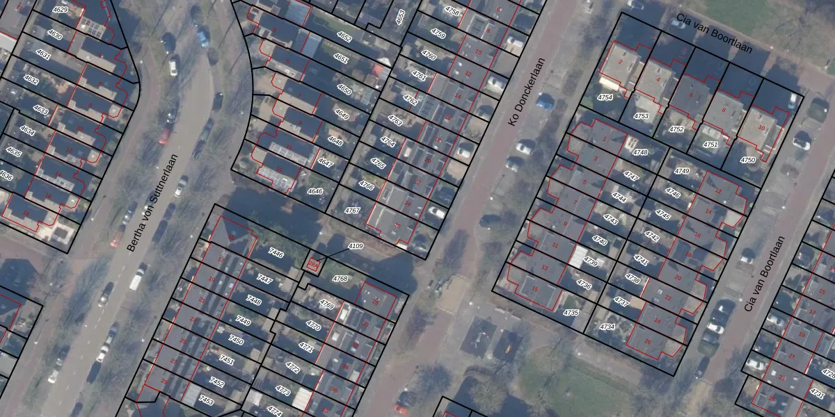 Gebruik de zoekbalk of klik op een perceel voor informatie over de adressen binnen dit perceel.