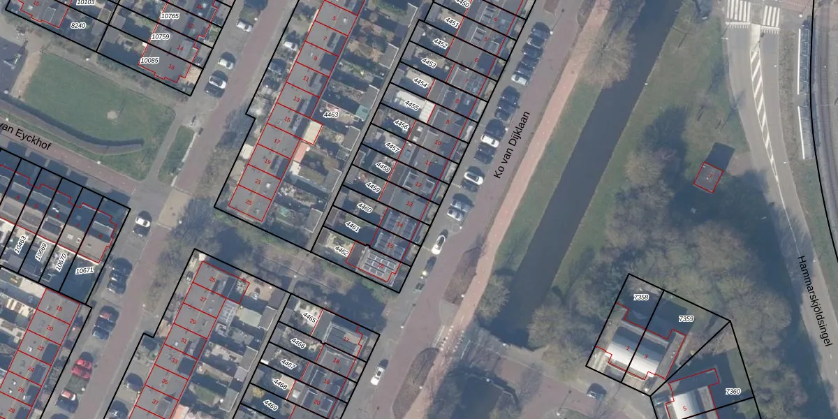 Ko van Dijklaan 13 is gelegen op kadastraal perceel ASV00O4459. Deze kadastrale aanduiding is uniek en wordt gebruikt door het Kadaster om eigendomsrechten en andere zakelijke rechten vast te leggen. Het perceel maakt onderdeel uit van de kadastrale gemeente Amstelveen.