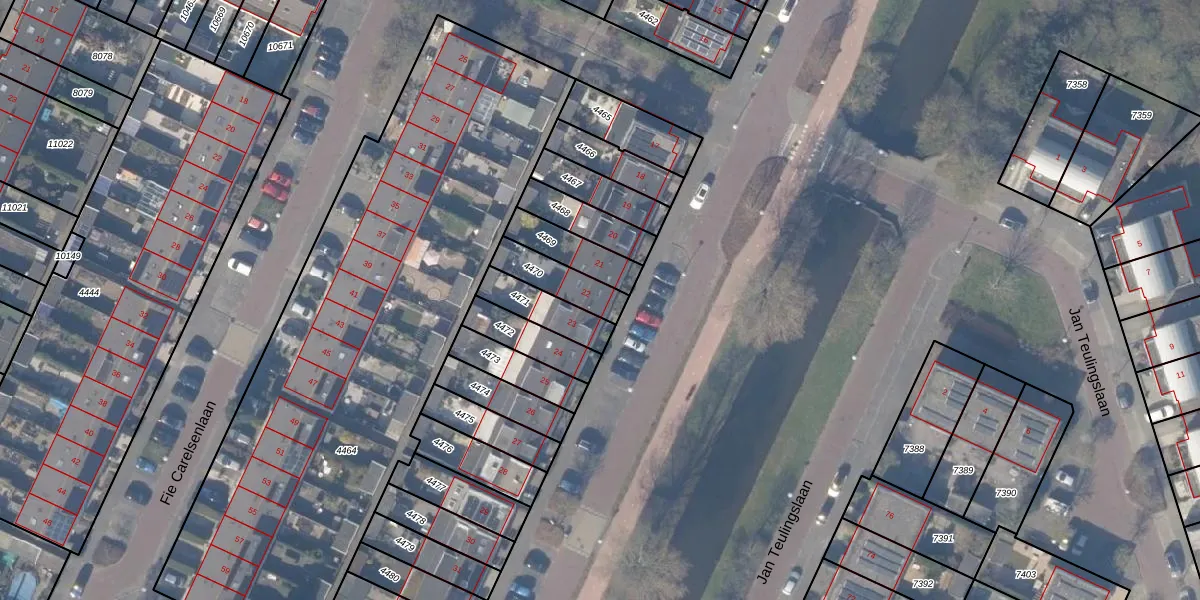 Het adres ligt op het perceel ASV00-O-4470, dat zich in de kadastrale gemeente Amstelveen bevindt. Het perceel is kleiner dan gemiddeld in Amstelveen. Het perceel is 126 m² groot, terwijl het gemiddelde ligt op 1598,95 m². Het grootste perceel in de kadastrale gemeente is 1,78 km². Het kleinste perceel heeft een oppervlakte van 0 m². Dit is het enige adres dat aanwezig is op het perceel. De huidige grenzen van het perceel zijn digitaal in de Basisregistratie Kadaster (BRK) geregistreerd op 28-11-1997.