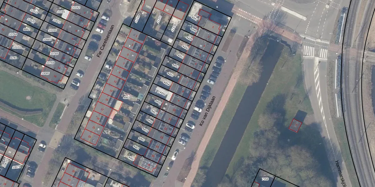 Ko van Dijklaan 8 is gelegen op kadastraal perceel ASV00O4454. Deze kadastrale aanduiding is uniek en wordt gebruikt door het Kadaster om eigendomsrechten en andere zakelijke rechten vast te leggen. Het perceel maakt onderdeel uit van de kadastrale gemeente Amstelveen.