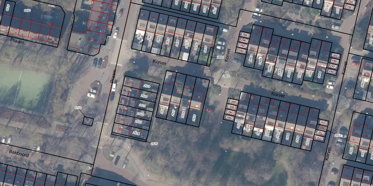 Gebruik de zoekbalk of klik op een perceel voor informatie over de adressen binnen dit perceel.
