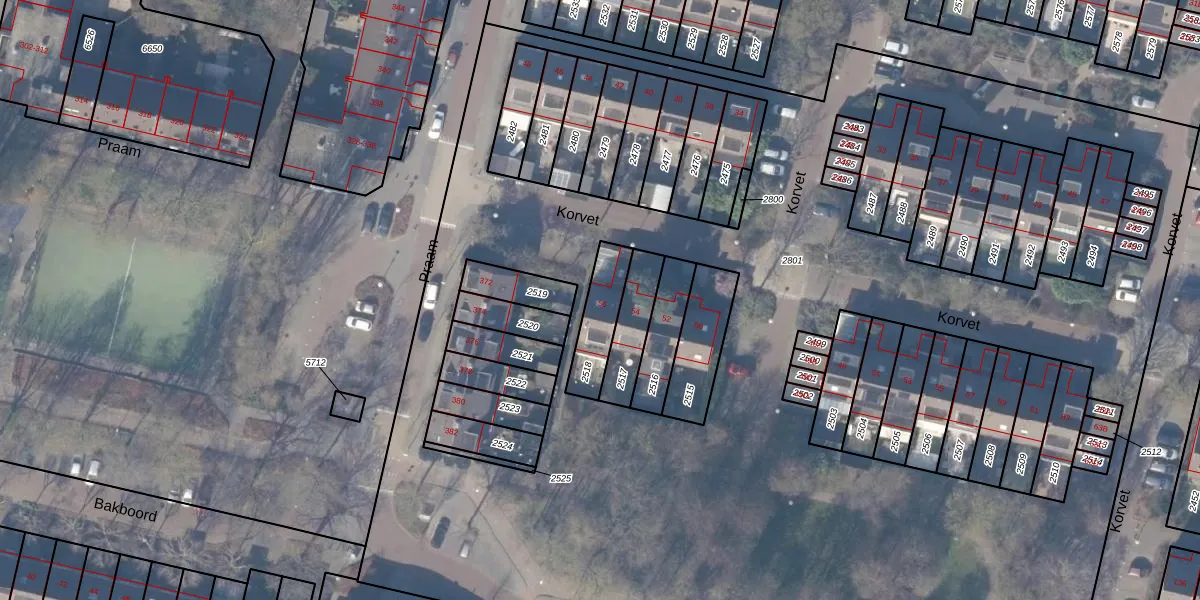 Korvet 56 is gelegen op kadastraal perceel ASV00L2518. Deze kadastrale aanduiding is uniek en wordt gebruikt door het Kadaster om eigendomsrechten en andere zakelijke rechten vast te leggen. Het perceel maakt onderdeel uit van de kadastrale gemeente Amstelveen.