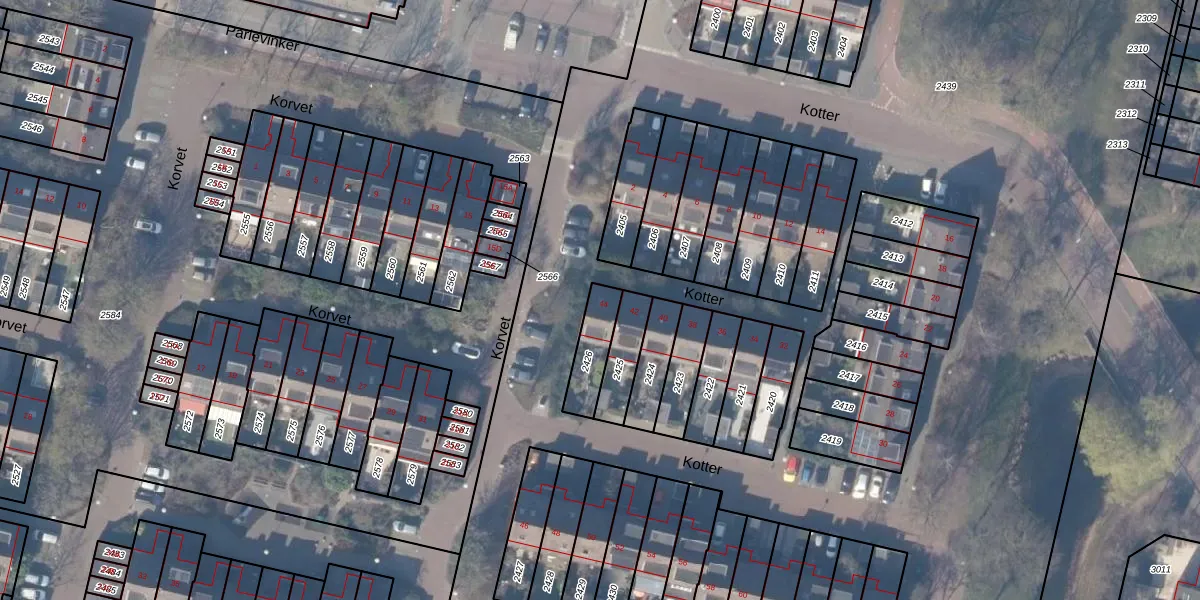 Gebruik de zoekbalk of klik op een perceel voor informatie over de adressen binnen dit perceel.