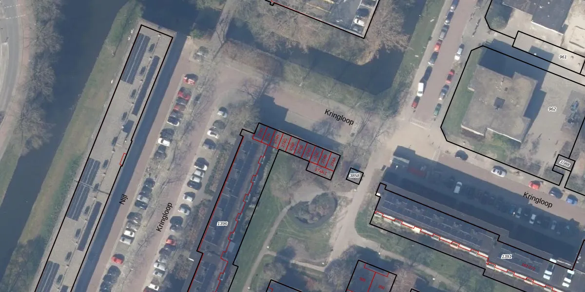 Het perceel waarop Kringloop 274-F staat heeft een oppervlakte van 1243 m². Dit is een zeer groot perceel. De perceeloppervlakte wordt geregistreerd door het Kadaster. Gedetailleerde informatie over de maten van dit perceel kunt u vinden in het rapport Kadastrale kaart met maatvoering van Kringloop 274-F.