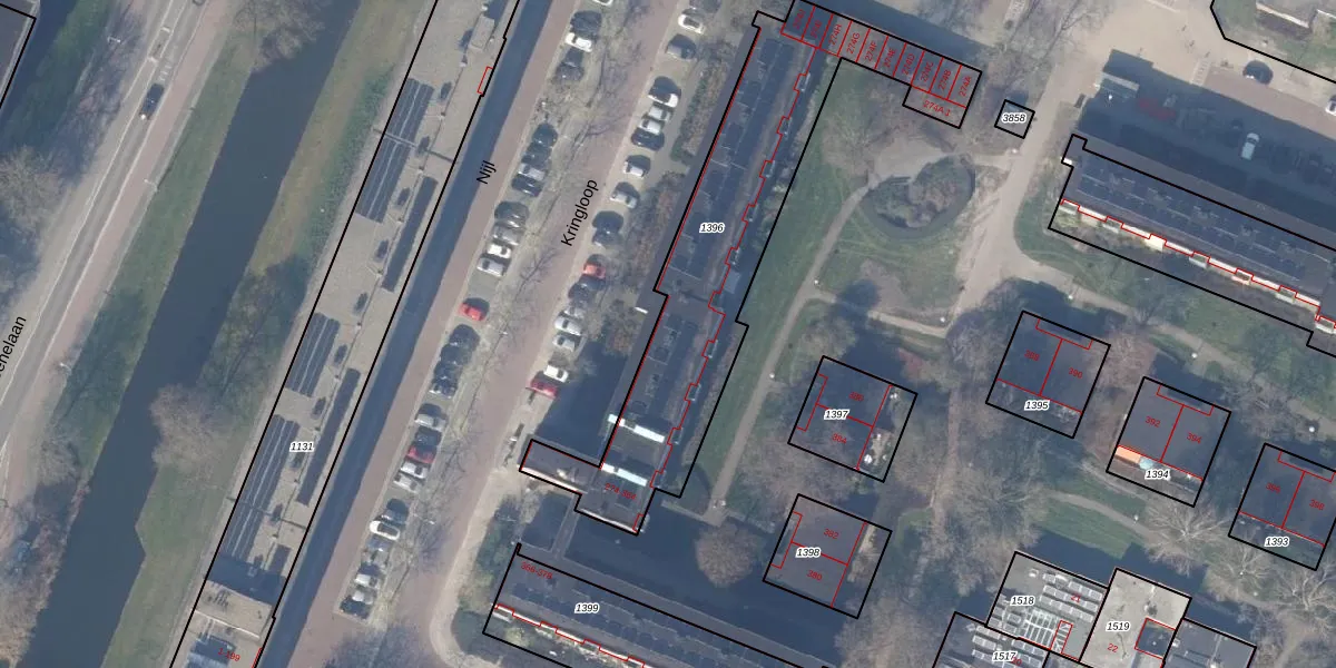 Het perceel waarop Kringloop 300 staat heeft een oppervlakte van 1243 m². Dit is een zeer groot perceel. De perceeloppervlakte wordt geregistreerd door het Kadaster. Gedetailleerde informatie over de maten van dit perceel kunt u vinden in het rapport Kadastrale kaart met maatvoering van Kringloop 300.
