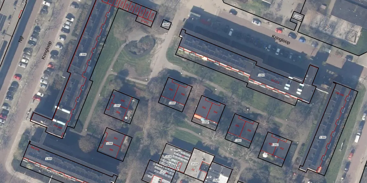 Het perceel waarop Kringloop 390 staat heeft een oppervlakte van 213 m². Dit is een middelgroot perceel. De perceeloppervlakte wordt geregistreerd door het Kadaster. Gedetailleerde informatie over de maten van dit perceel kunt u vinden in het rapport Kadastrale kaart met maatvoering van Kringloop 390.