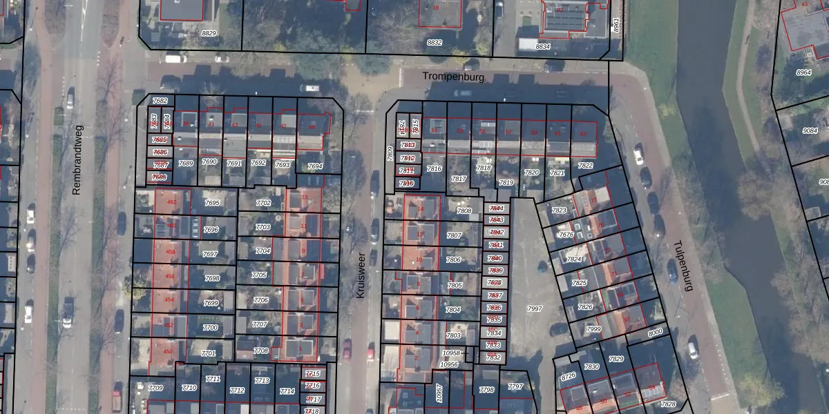 Gebruik de zoekbalk of klik op een perceel voor informatie over de adressen binnen dit perceel.