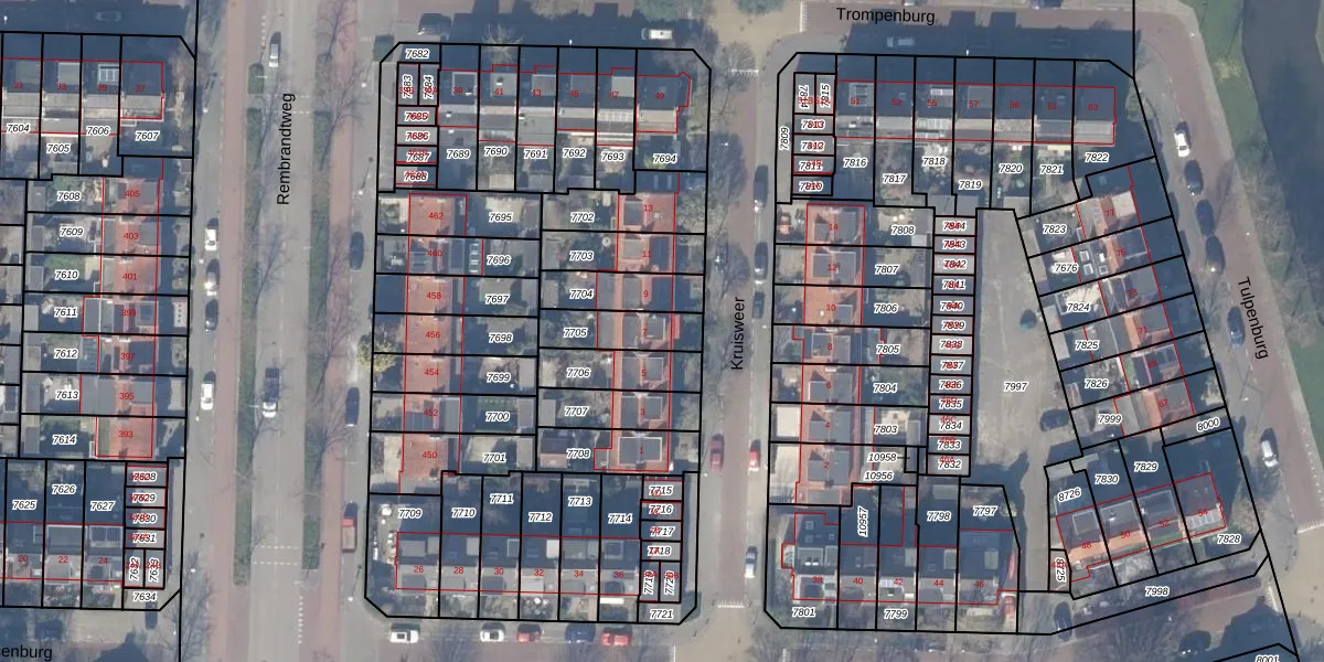 Gebruik de zoekbalk of klik op een perceel voor informatie over de adressen binnen dit perceel.