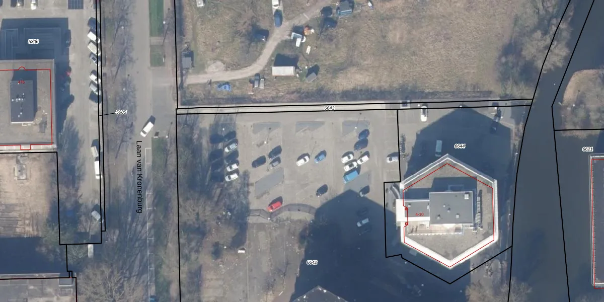 Laan van Kronenburg 2-A-1416 is gelegen op kadastraal perceel ASV00I6642. Deze kadastrale aanduiding is uniek en wordt gebruikt door het Kadaster om eigendomsrechten en andere zakelijke rechten vast te leggen. Het perceel maakt onderdeel uit van de kadastrale gemeente Amstelveen.