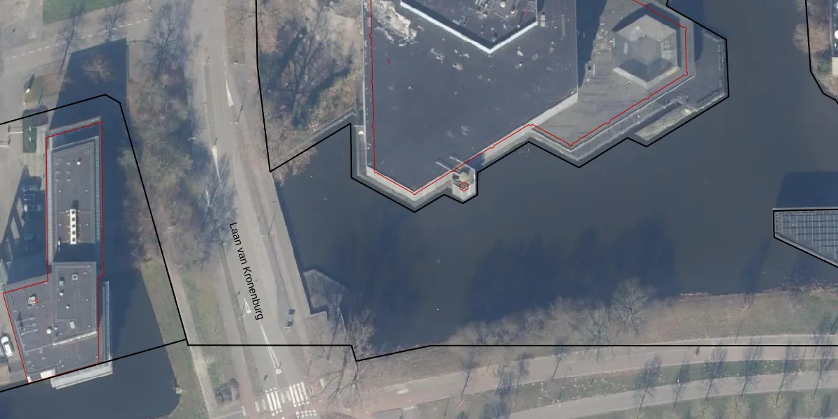 Het perceel waarop Laan van Kronenburg 2-B-1018 staat heeft een oppervlakte van 1,4 ha. Dit is een zeer groot perceel. De perceeloppervlakte wordt geregistreerd door het Kadaster. Gedetailleerde informatie over de maten van dit perceel kunt u vinden in het rapport Kadastrale kaart met maatvoering van Laan van Kronenburg 2-B-1018.