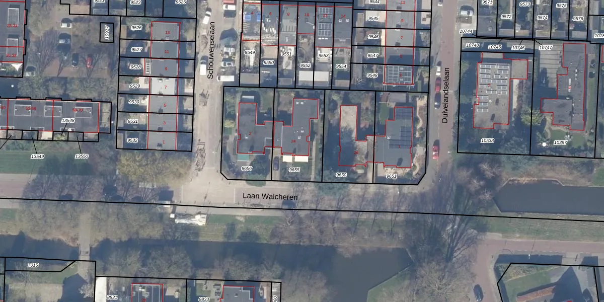 Laan Walcheren 24 is gelegen op kadastraal perceel ASV00H9655. Deze kadastrale aanduiding is uniek en wordt gebruikt door het Kadaster om eigendomsrechten en andere zakelijke rechten vast te leggen. Het perceel maakt onderdeel uit van de kadastrale gemeente Amstelveen.