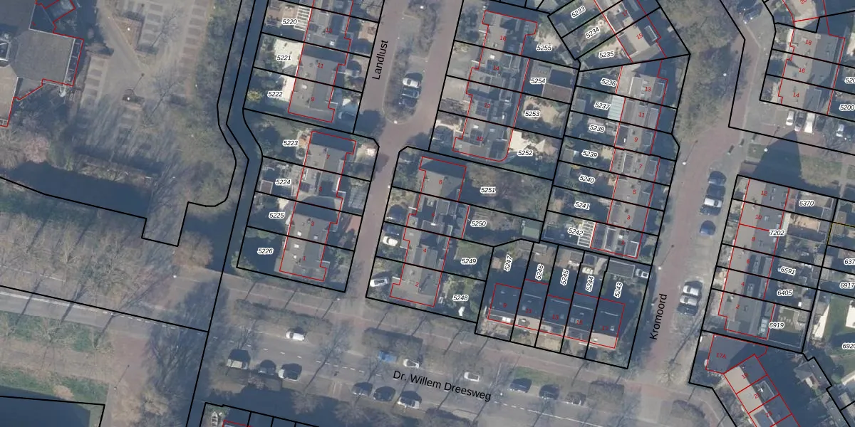 Gebruik de zoekbalk of klik op een perceel voor informatie over de adressen binnen dit perceel.