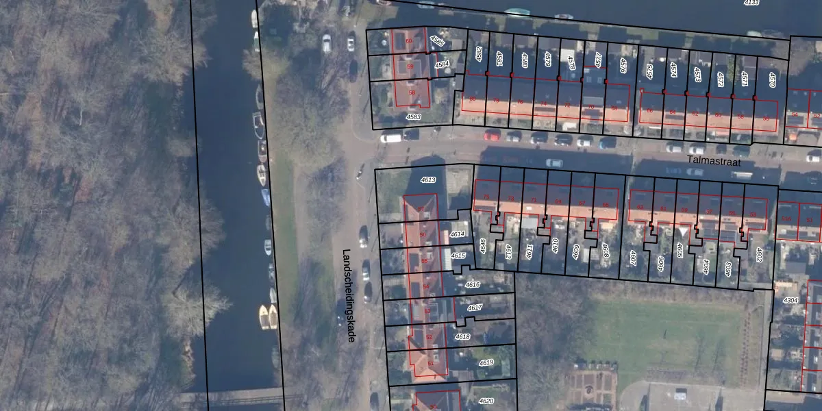 Gebruik de zoekbalk of klik op een perceel voor informatie over de adressen binnen dit perceel.