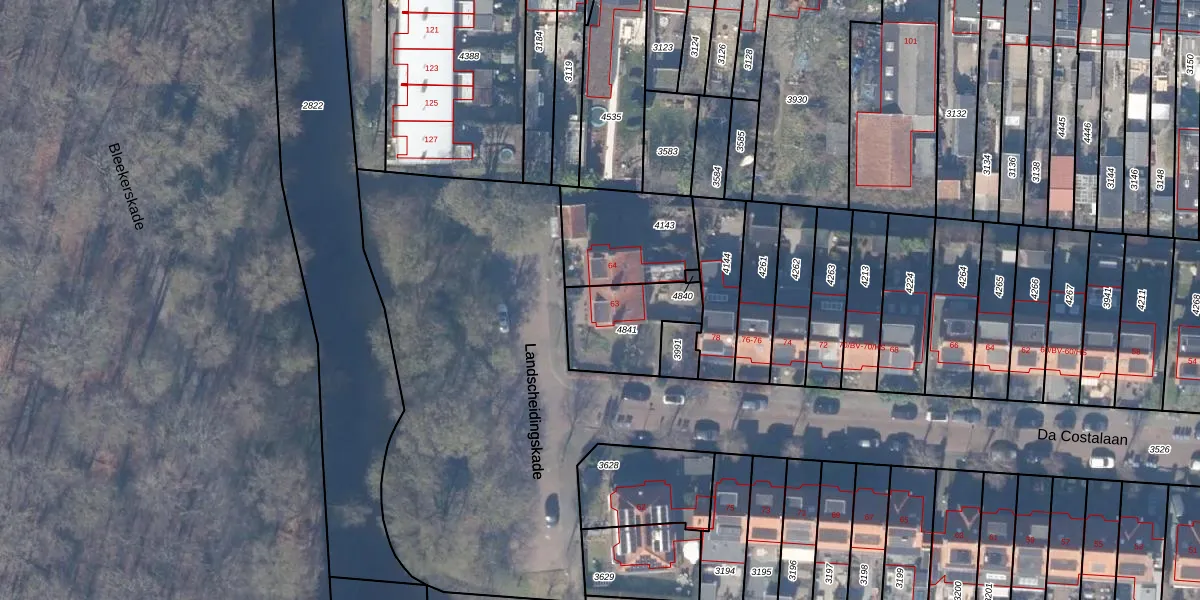 Landscheidingskade 63 is gelegen op kadastraal perceel ASV00G4841. Deze kadastrale aanduiding is uniek en wordt gebruikt door het Kadaster om eigendomsrechten en andere zakelijke rechten vast te leggen. Het perceel maakt onderdeel uit van de kadastrale gemeente Amstelveen.