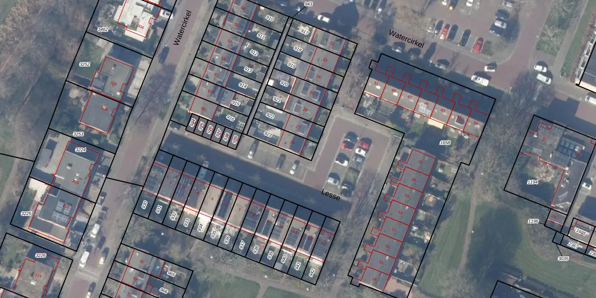 Gebruik de zoekbalk of klik op een perceel voor informatie over de adressen binnen dit perceel.