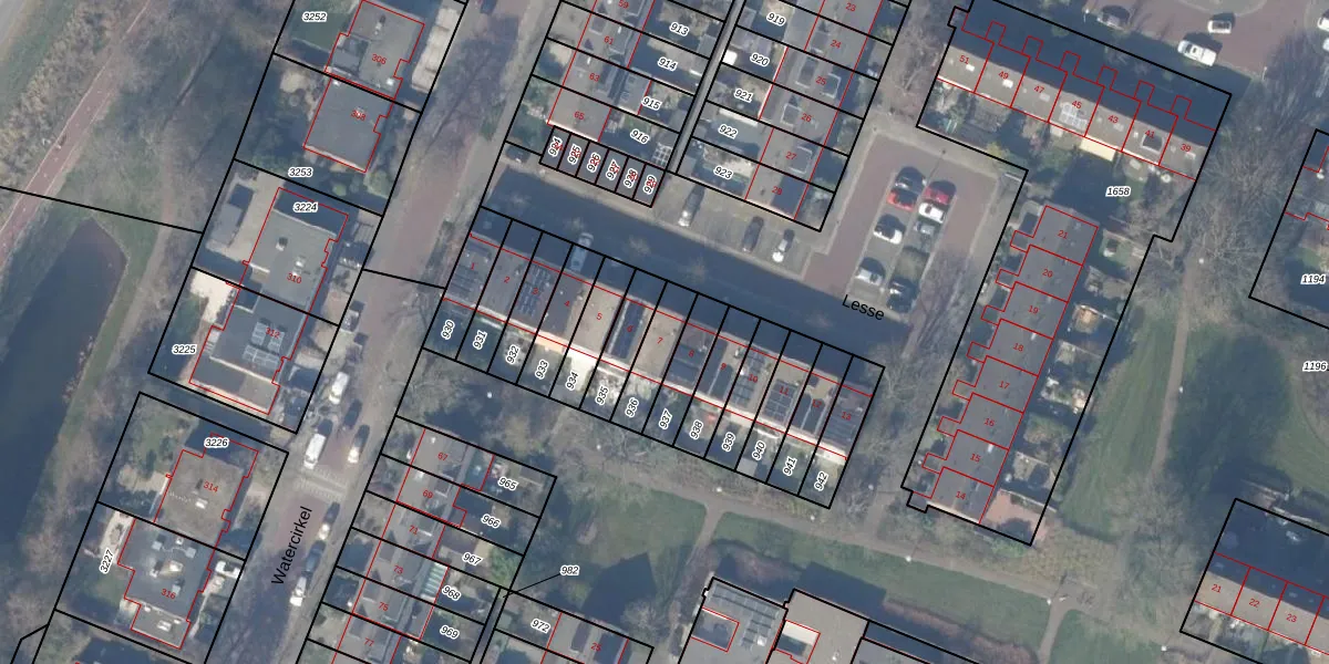 Gebruik de zoekbalk of klik op een perceel voor informatie over de adressen binnen dit perceel.