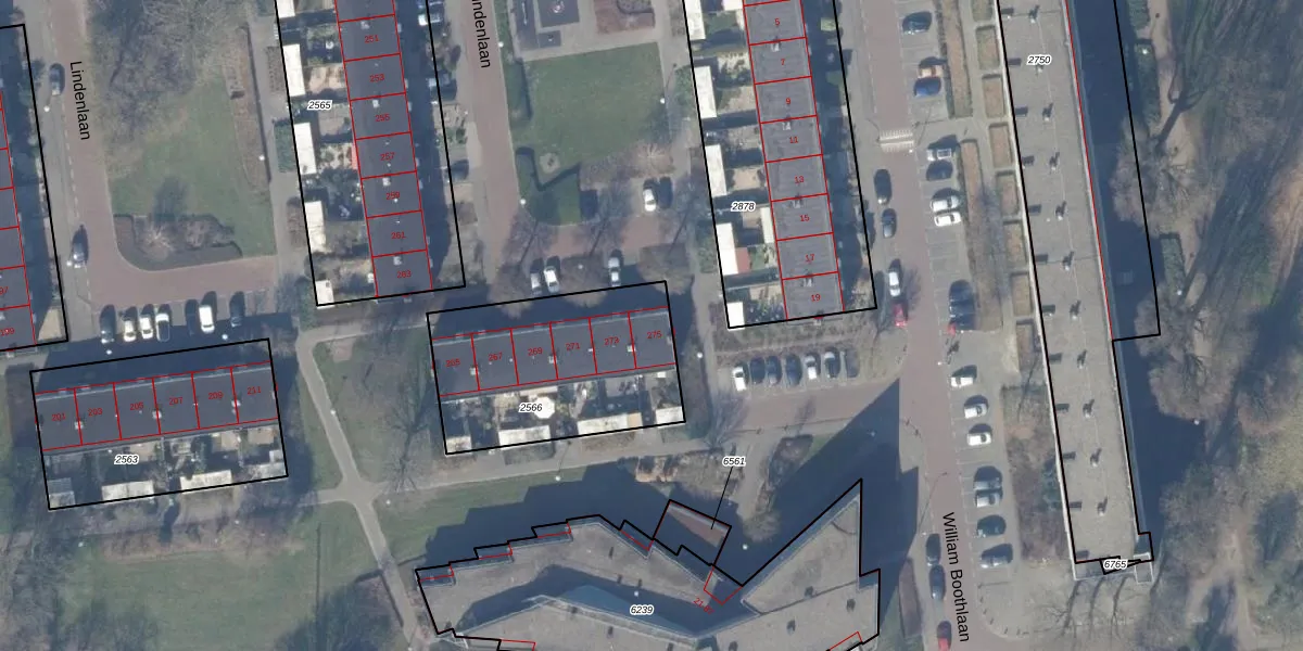 Lindenlaan 275 is gelegen op kadastraal perceel ASV00M2566. Deze kadastrale aanduiding is uniek en wordt gebruikt door het Kadaster om eigendomsrechten en andere zakelijke rechten vast te leggen. Het perceel maakt onderdeel uit van de kadastrale gemeente Amstelveen.