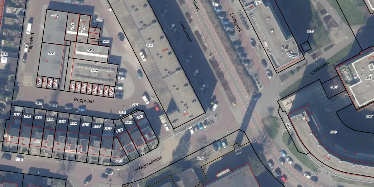 Het perceel waarop Lindenlaan 65 staat heeft een oppervlakte van 1638 m². Dit is een zeer groot perceel. De perceeloppervlakte wordt geregistreerd door het Kadaster. Gedetailleerde informatie over de maten van dit perceel kunt u vinden in het rapport Kadastrale kaart met maatvoering van Lindenlaan 65.