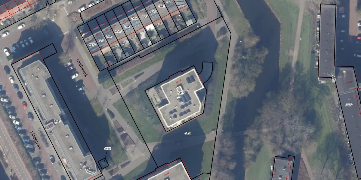 Lindepark 56 is gelegen op kadastraal perceel ASV00M6467. Deze kadastrale aanduiding is uniek en wordt gebruikt door het Kadaster om eigendomsrechten en andere zakelijke rechten vast te leggen. Het perceel maakt onderdeel uit van de kadastrale gemeente Amstelveen.