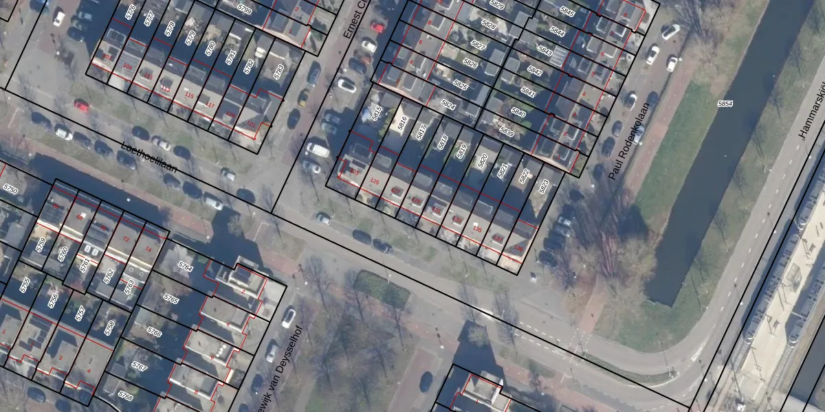 Gebruik de zoekbalk of klik op een perceel voor informatie over de adressen binnen dit perceel.