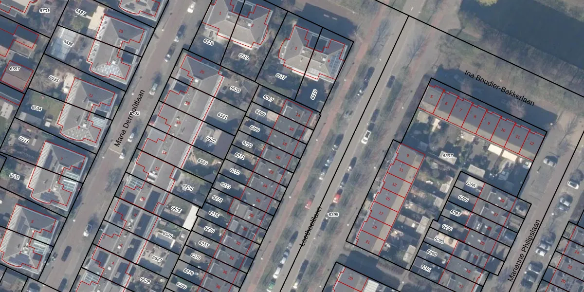 Gebruik de zoekbalk of klik op een perceel voor informatie over de adressen binnen dit perceel.