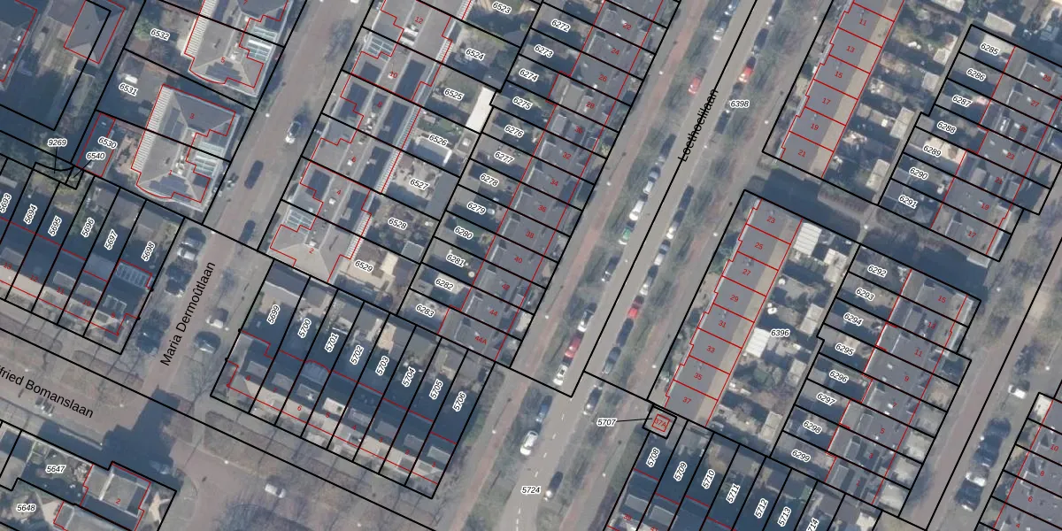 Het perceel waarop Loethoelilaan 40 staat heeft een oppervlakte van 127 m². Dit is een middelgroot perceel. De perceeloppervlakte wordt geregistreerd door het Kadaster. Gedetailleerde informatie over de maten van dit perceel kunt u vinden in het rapport Kadastrale kaart met maatvoering van Loethoelilaan 40.