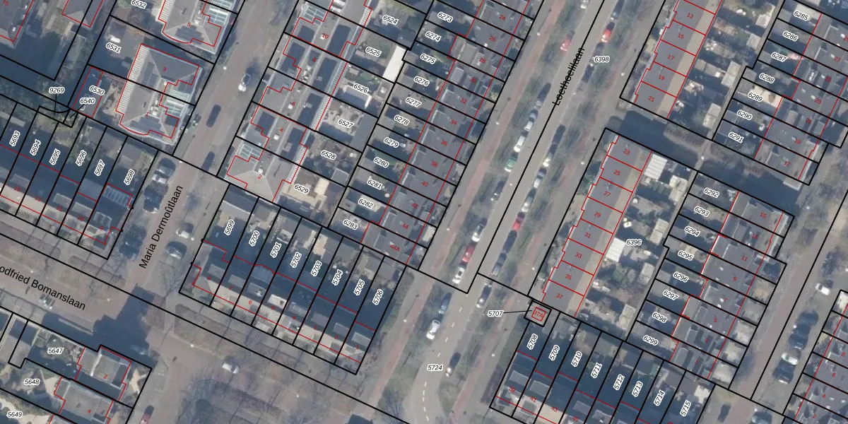 Gebruik de zoekbalk of klik op een perceel voor informatie over de adressen binnen dit perceel.