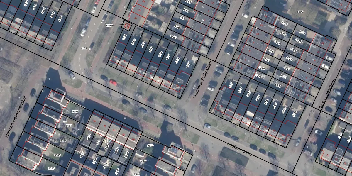 Gebruik de zoekbalk of klik op een perceel voor informatie over de adressen binnen dit perceel.