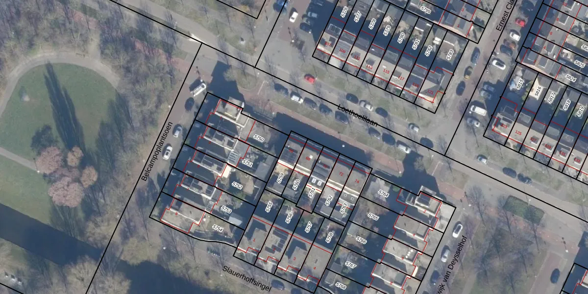 Gebruik de zoekbalk of klik op een perceel voor informatie over de adressen binnen dit perceel.