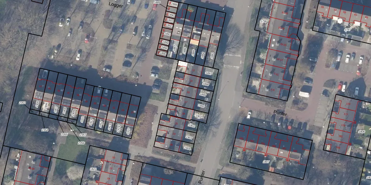 Gebruik de zoekbalk of klik op een perceel voor informatie over de adressen binnen dit perceel.