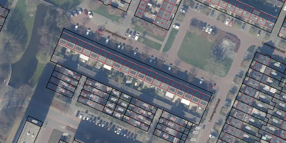 Het perceel waarop Lohengrinstraat 45 staat heeft een oppervlakte van 2780 m². Dit is een zeer groot perceel. De perceeloppervlakte wordt geregistreerd door het Kadaster. Gedetailleerde informatie over de maten van dit perceel kunt u vinden in het rapport Kadastrale kaart met maatvoering van Lohengrinstraat 45.