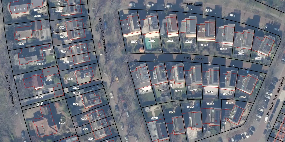 Lucebertlaan 1 is gelegen op kadastraal perceel ASV00H13286. Deze kadastrale aanduiding is uniek en wordt gebruikt door het Kadaster om eigendomsrechten en andere zakelijke rechten vast te leggen. Het perceel maakt onderdeel uit van de kadastrale gemeente Amstelveen.