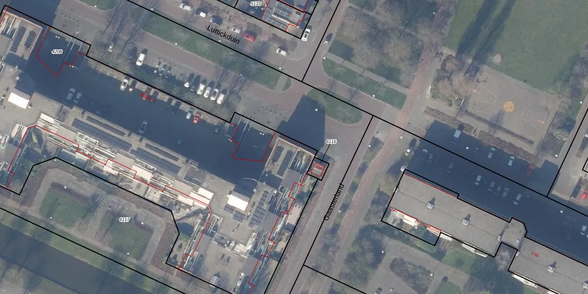 Het perceel waarop Luttickduin 85 staat heeft een oppervlakte van 5723 m². Dit is een zeer groot perceel. De perceeloppervlakte wordt geregistreerd door het Kadaster. Gedetailleerde informatie over de maten van dit perceel kunt u vinden in het rapport Kadastrale kaart met maatvoering van Luttickduin 85.