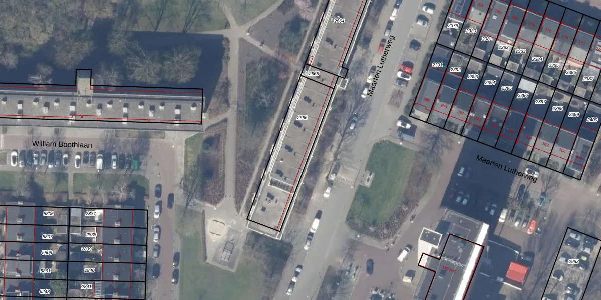 Het perceel waarop Maarten Lutherweg 151 staat heeft een oppervlakte van 602 m². Dit is een groot perceel. De perceeloppervlakte wordt geregistreerd door het Kadaster. Gedetailleerde informatie over de maten van dit perceel kunt u vinden in het rapport Kadastrale kaart met maatvoering van Maarten Lutherweg 151.
