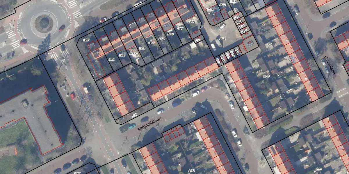 Het perceel waarop Magnolialaan 39 staat heeft een oppervlakte van 4255 m². Dit is een zeer groot perceel. De perceeloppervlakte wordt geregistreerd door het Kadaster. Gedetailleerde informatie over de maten van dit perceel kunt u vinden in het rapport Kadastrale kaart met maatvoering van Magnolialaan 39.