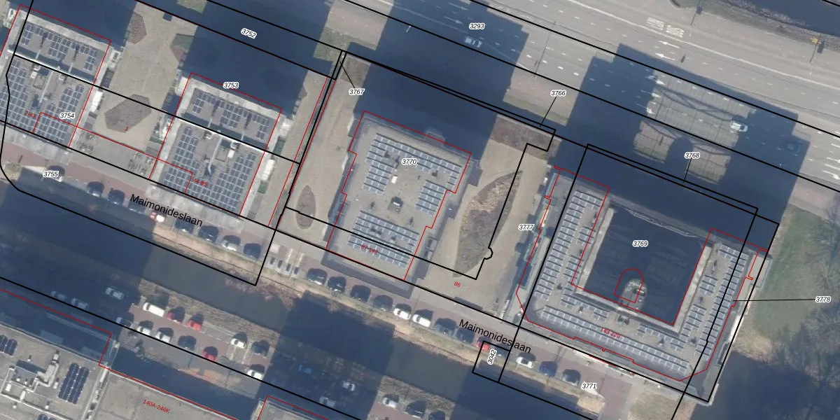 Maimonideslaan 107 is gelegen op kadastraal perceel ASV00L3770. Deze kadastrale aanduiding is uniek en wordt gebruikt door het Kadaster om eigendomsrechten en andere zakelijke rechten vast te leggen. Het perceel maakt onderdeel uit van de kadastrale gemeente Amstelveen.