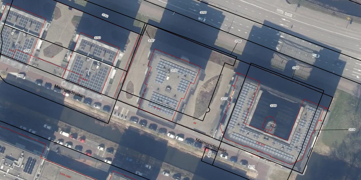 Maimonideslaan 115 is gelegen op kadastraal perceel ASV00L3770. Deze kadastrale aanduiding is uniek en wordt gebruikt door het Kadaster om eigendomsrechten en andere zakelijke rechten vast te leggen. Het perceel maakt onderdeel uit van de kadastrale gemeente Amstelveen.