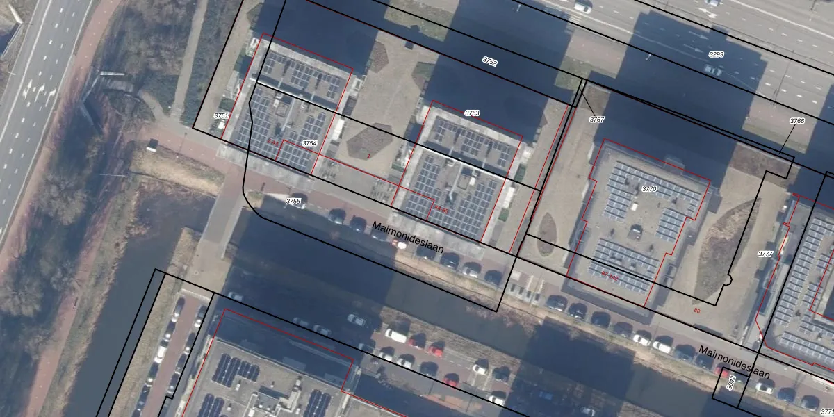Maimonideslaan 45 is gelegen op kadastraal perceel ASV00L3754. Deze kadastrale aanduiding is uniek en wordt gebruikt door het Kadaster om eigendomsrechten en andere zakelijke rechten vast te leggen. Het perceel maakt onderdeel uit van de kadastrale gemeente Amstelveen.