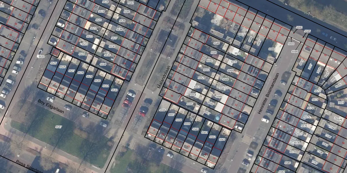 Gebruik de zoekbalk of klik op een perceel voor informatie over de adressen binnen dit perceel.