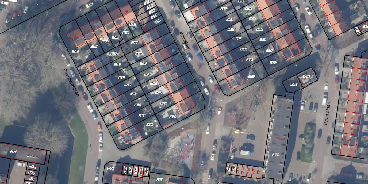 Het perceel waarop Maluslaan 13 staat heeft een oppervlakte van 165 m². Dit is een middelgroot perceel. De perceeloppervlakte wordt geregistreerd door het Kadaster. Gedetailleerde informatie over de maten van dit perceel kunt u vinden in het rapport Kadastrale kaart met maatvoering van Maluslaan 13.
